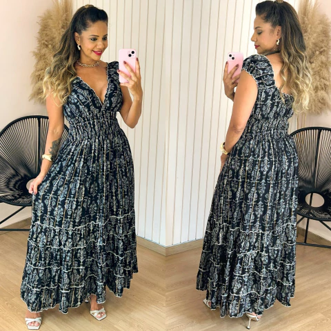 Vestido Longo Indiano Ciganinha Raiane Preto