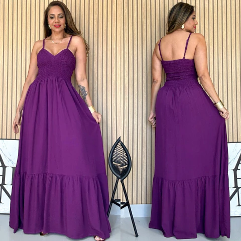 Vestido Longo Lastex Decote V Carol VSC Uva