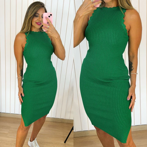 Vestido Tricot Midi Canelado Maressa Verde Bandeira